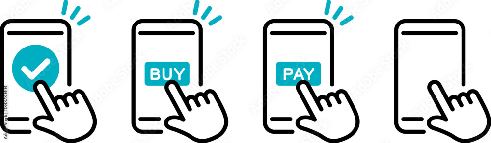 スマートフォンと手のアイコン。タップ。クリック。(Hand touch screen smartphone icon. Click on the smartphone.) #1848780303
