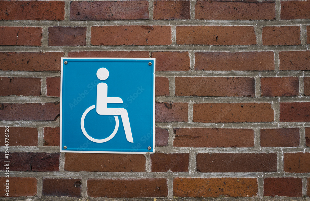 Handicaped parking sign on a brick wall. #1944776126