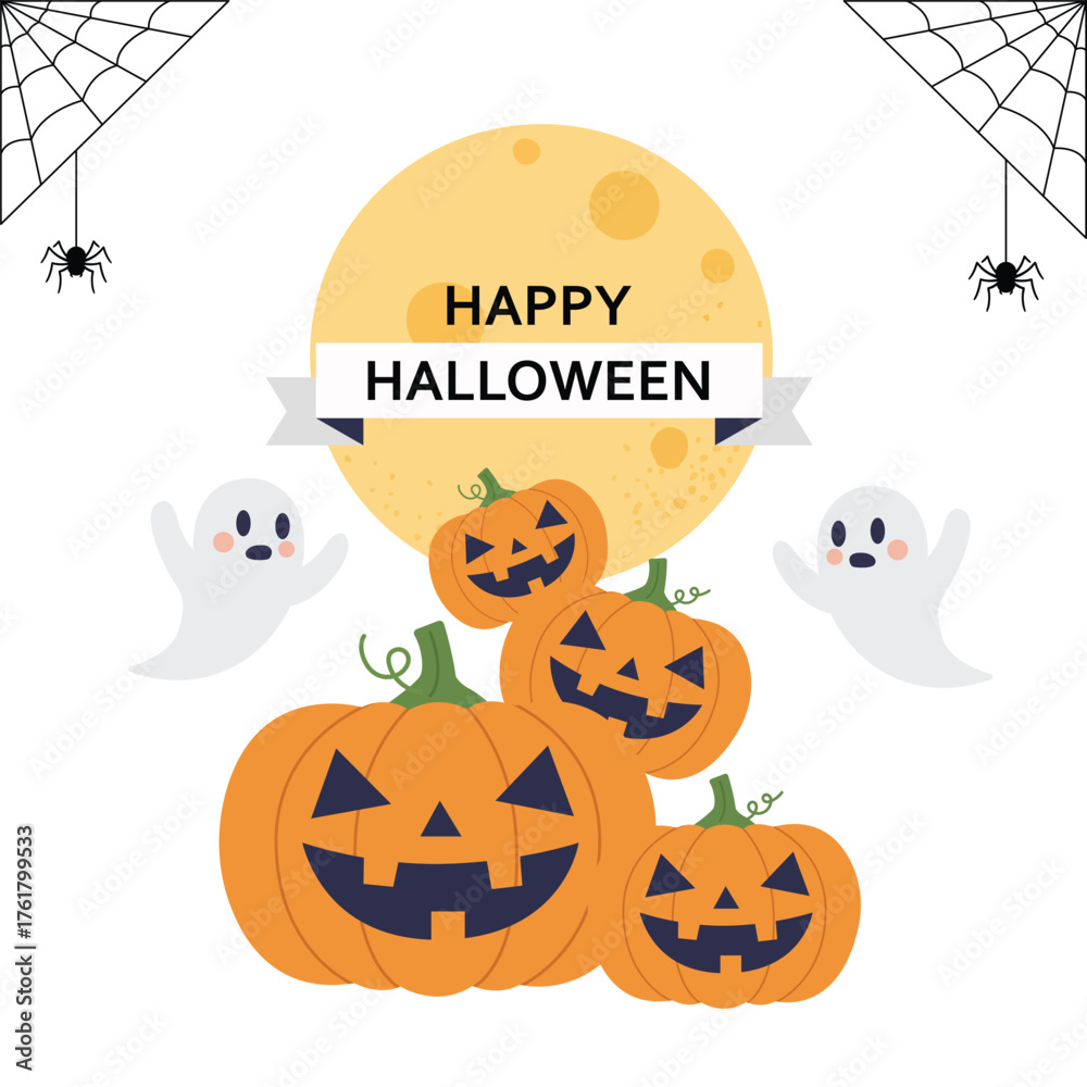 Happy Halloween with pumpkins and ghosts. illustrator vector #1761799533