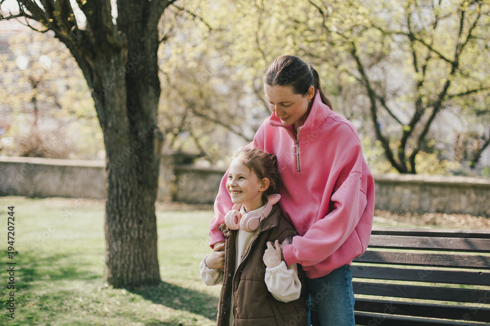 Happy mother and daughter relaxing in a park on sunny day. #1947207244