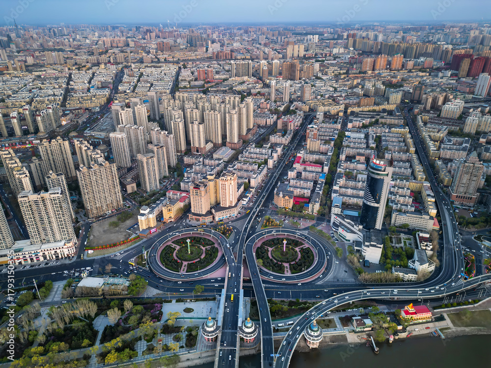 Harbin, CHINA-MAY 05, 2025-Aerial cityscape of Harbin's downtown, is the capital of Heilongjiang, China. It is the largest city of Heilongjiang #1793150335