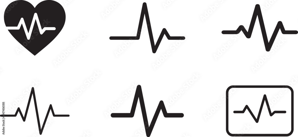 Heart rate pulse graph and heartbeat icon set. Vector EPS for health and medical design. #1847406588