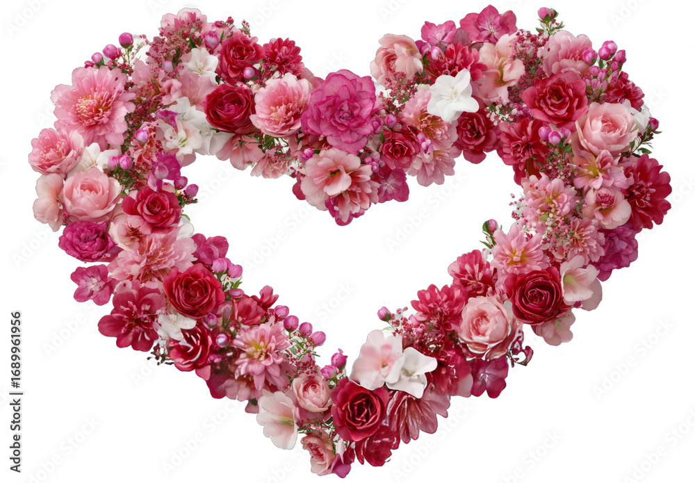Heart Shape Made of Pink Red Flowers on Transparent Background Romantic Floral Arrangement #1689961956