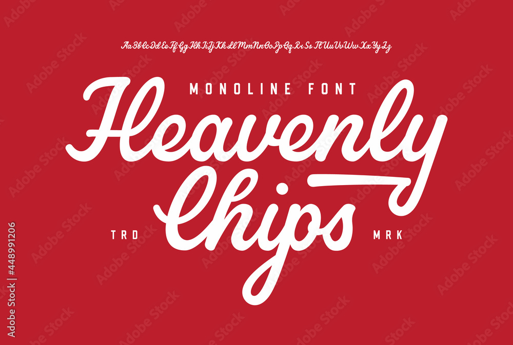 Heavenly Chips. Original Monoline Script Font. Vector Illustration. #448991206
