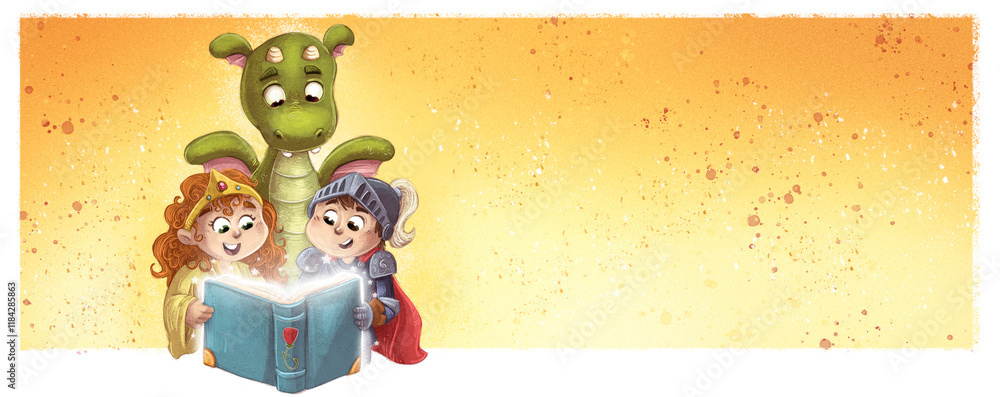Illustration of children and dragon with book of Sant Jordi #1184285863