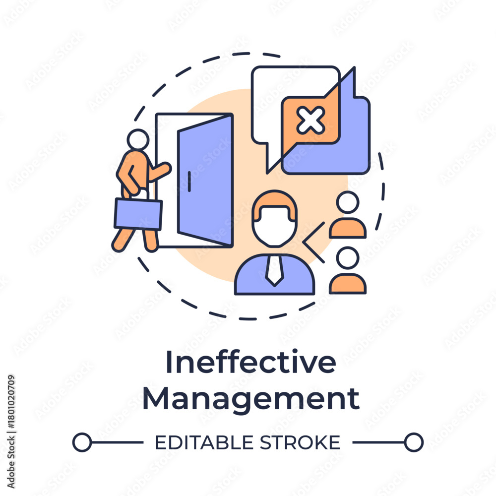 Ineffective management multi color concept icon. Talents loss. Cause of voluntary employee turnover. Round shape line illustration. Abstract idea. Graphic design. Easy to use in promotional material, #1801020709