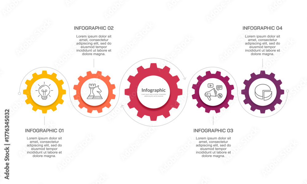 Infographic about gears 6 steps cogwheel engineering. Business presentation, Plan and Strategy. Vector illustration. #1776345032