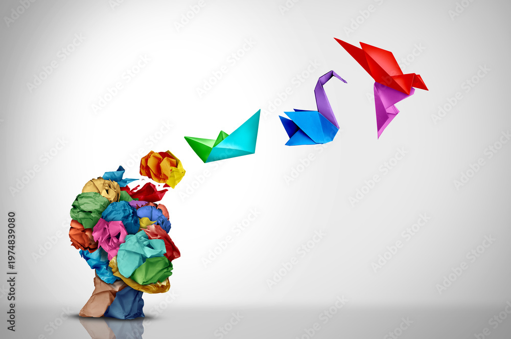 Innovative Development Thinking idea and human designer creative mind concept or brainstorm ideas with smart design thinking as origami symbols. #1974839080