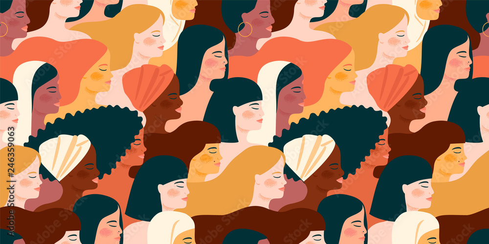 International Womens Day. Vector seamless pattern with with women different nationalities and cultures. #246359063