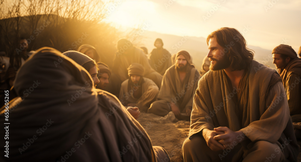 Jesus talks to his disciples about God and religion - theme biblical images, Jesus Christ and faith. #655605265