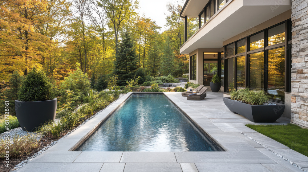 Landscape architecture of a contemporary home with pool, modern plant #1617128161