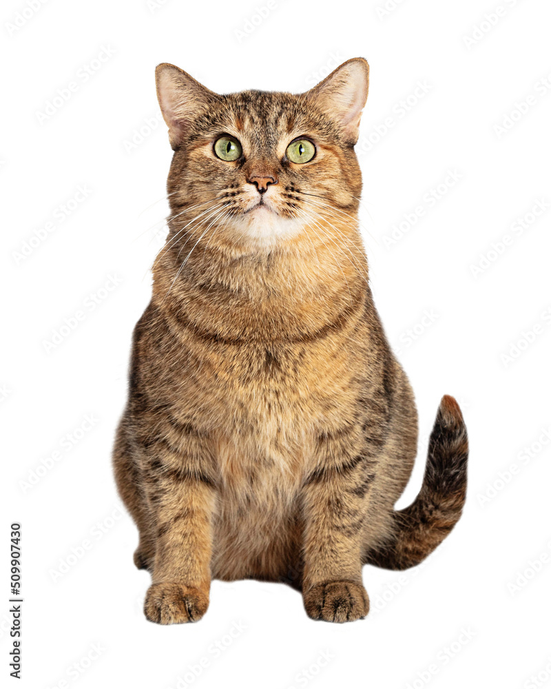Large brown and black tabby cat sitting #509907430