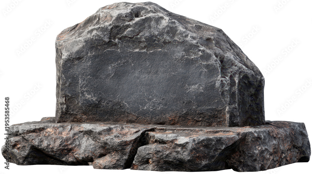 Large gray rock with a smooth side resting on the ground in an outdoor setting near grass #1953585468