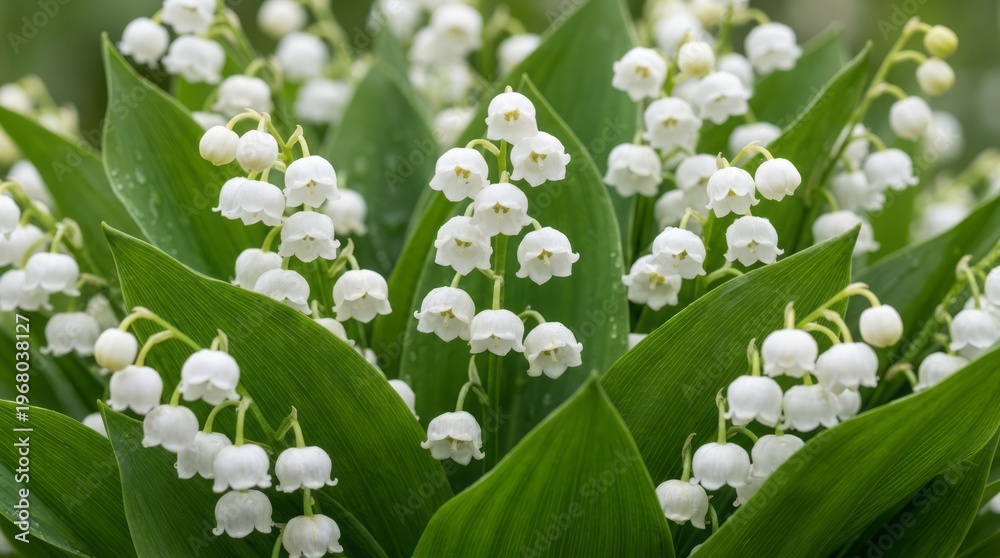 Lily of the Valley Flowers in Bloom Lily Of The Valley Flowers White Flowers Green Leaves Nature Botanical Floral. Concept featuring lily of the valley, flowers, white flowers, green leaves, nature... #1968038127