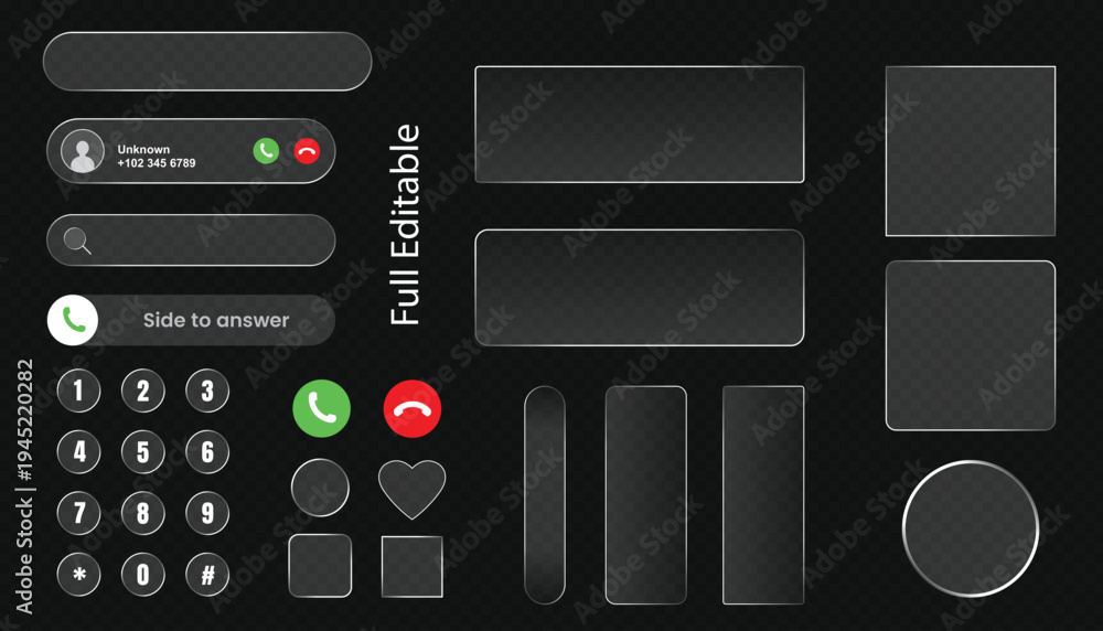 Liquid glass Smartphone Call Interface, Slide to answer incoming call button, liquid glass notification mobile app, Glass Button Set, 3D modern answer and decline phone call buttons #1945220282
