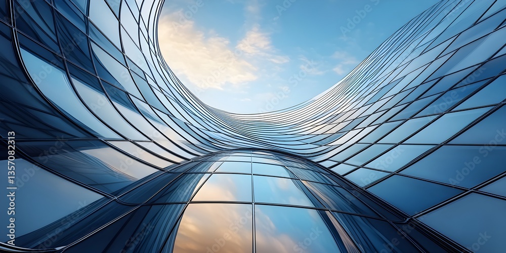 Low angle view of futuristic architecture, Skyscraper of office building with curve glass window, AI generative #1357082313