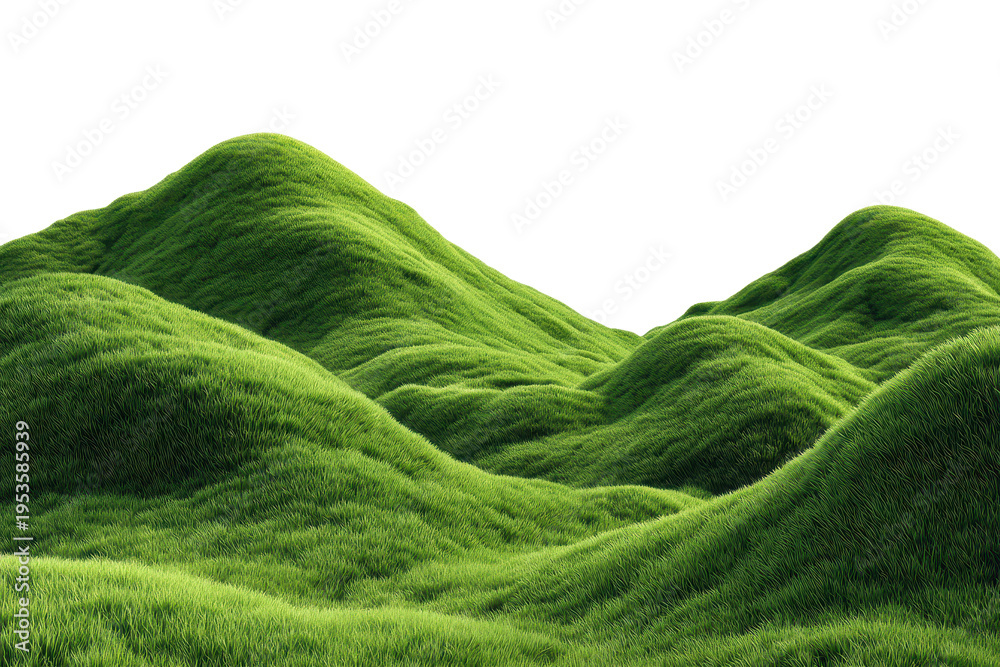 Lush green hills spread across a clear sky under bright daylight in a natural landscape #1953585939