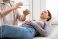 Male psychologist with pendulum hypnotizing woman on couch in office #1943938821