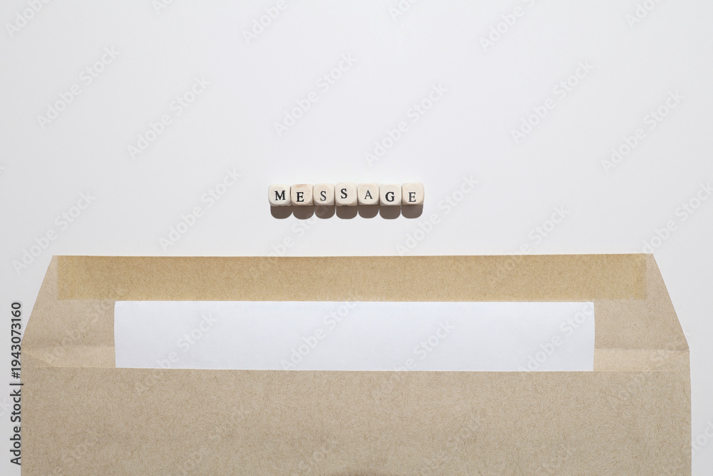 Message word above envelope symbolizing written communication, official letters, and information exchange. #1943073160