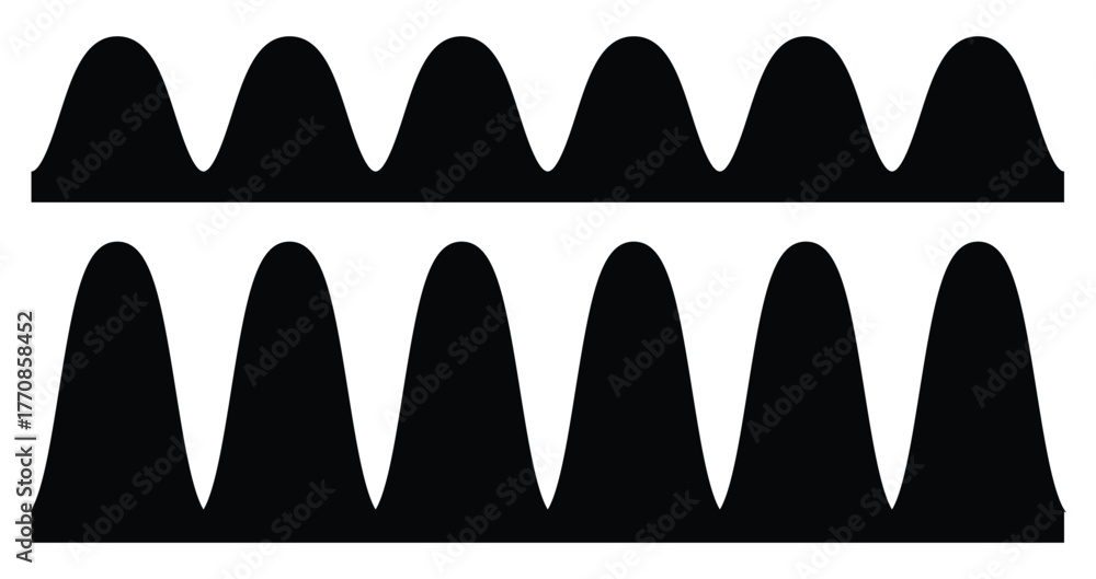 Minimal black wave pattern or decorative scalloped and wavy border pattern set. featuring mirrored rows of curved peaks and valleys, continuous organic wave shapes. abstract geometric backgrounds #1770858452