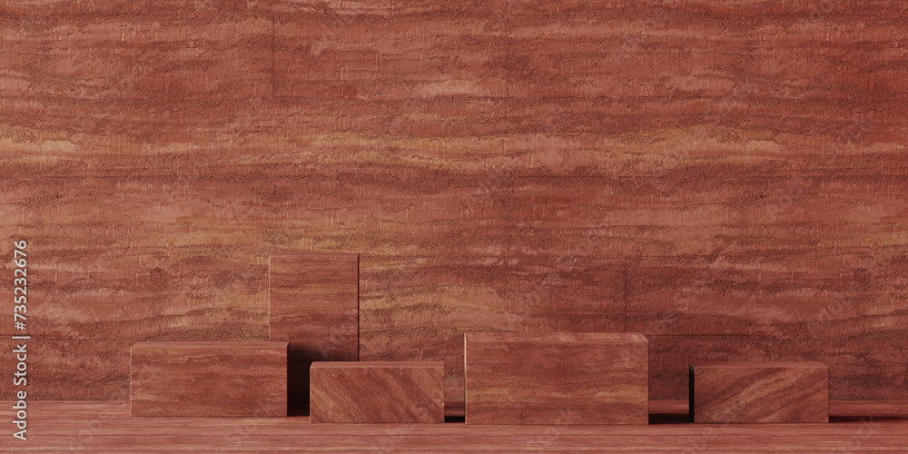 Minimal mockup concept for cosmetic product presentation. Clay Rammed Earth podium on red background. Clipping path of each element included. 3d rendering illustration. #735232676