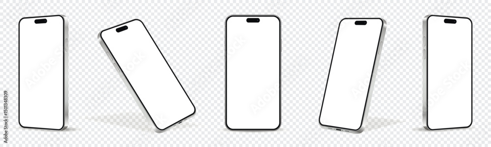 Mobile phone mockups, set of phones in different angles isolated on transparent background #1501348309