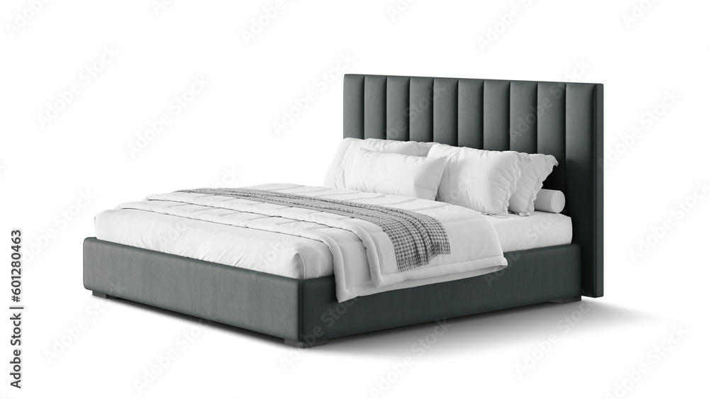 Modern double bed on isolated white background. Furniture for the modern interior, minimalist design. Eco leather. #601280463
