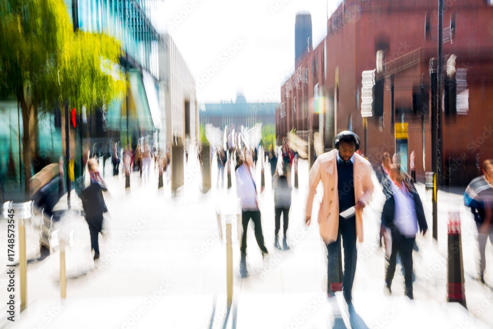 Motion blur of people walking in the City of London at sunny day. #1748573545