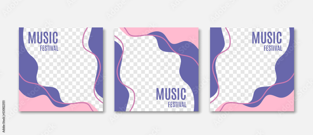 music festival wave pink purple color post template, editable post template social media banners vector #530822151