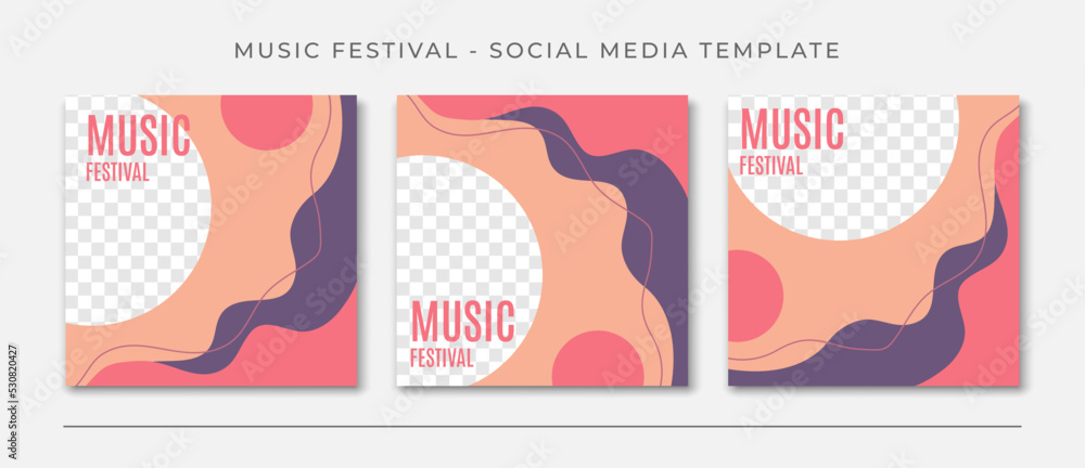 music festival wave red orange color post template, editable post template social media banners vector #530820427