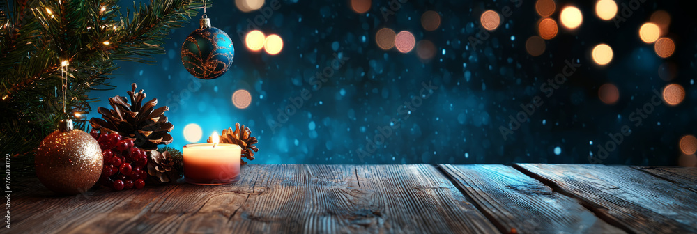 New Year decoration on wooden background #1765800129