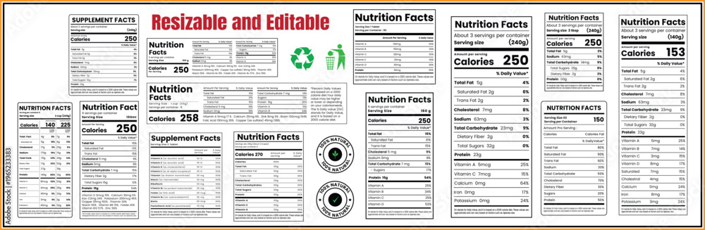 Nutrition Facts,nutrition facts label template – food information panel,supplement facts,vitamin facts, detailed nutrition facts with calories and ingredients. #1965233383