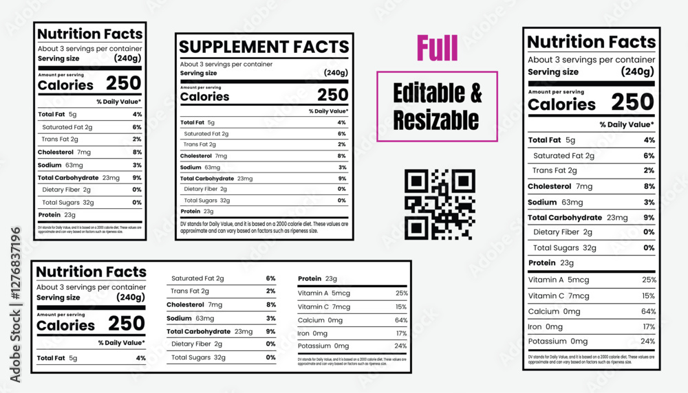 Nutrition facts template, supplement facts template and vitamin facts vector template #1276837196