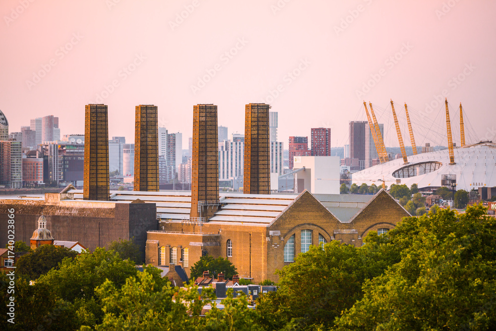 Old Power station in Greenwich at sunset and city view from hills, London #1740023866