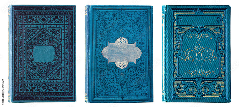Old skin book cover with embossed golden abstract pattern and floral decorations isolate on white background. Modern style. Abstract vintage decorations 19th century. #1747199770