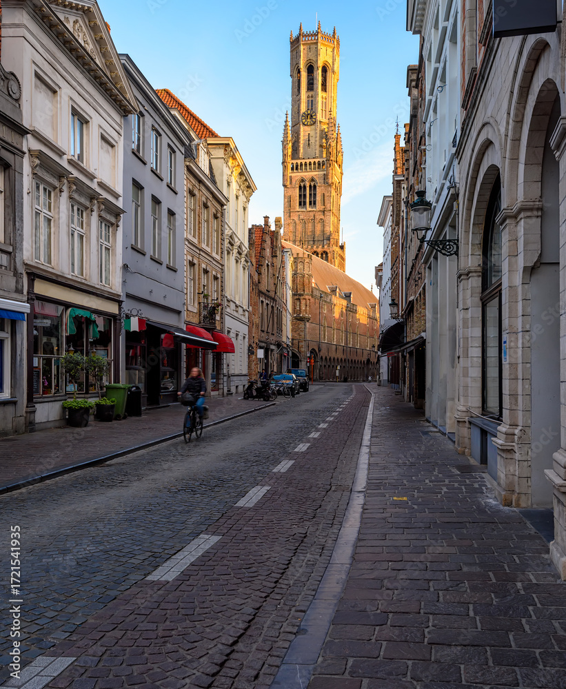 Old street in Bruges (Brugge), Belgium. Morning cityscape of Bruges. Typical architecture of Bruges #1721541935