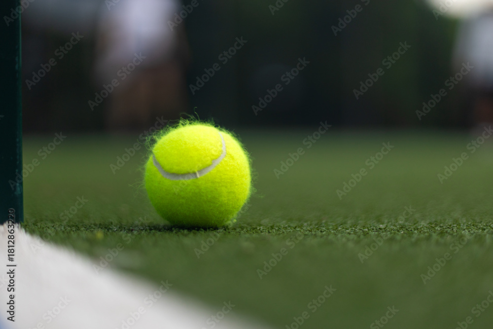 Padel or tennis ball. Background with copy space. Ball at sports court. Social media template. Promotion for padel events. #1812863220