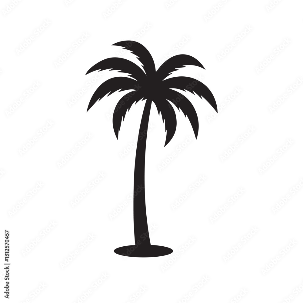Palm tree silhouettes, black and white silhouette vector. Tropical palm tree #1312570457