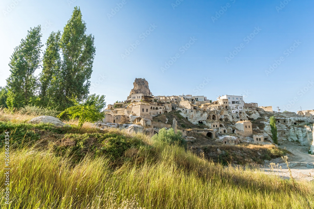 Panoramic view of Uchisar Castle and ancient cave houses in Cappadocia, Turkey #1268628334