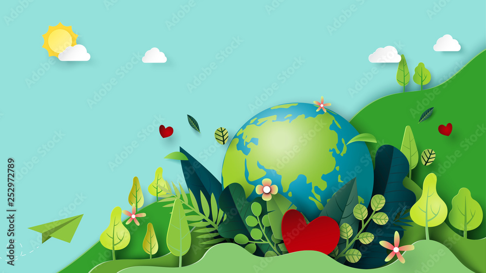 Paper art of green nature and earth day concept background template.Ecology and environment conservation concept.Vector illustration. #252972789
