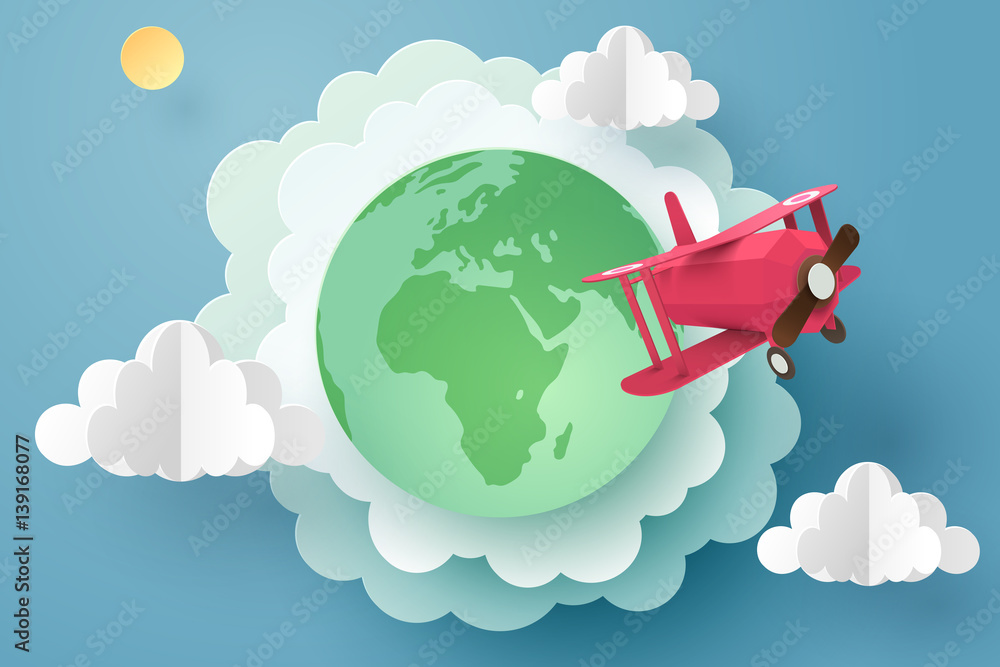 Paper art of red plane flying out from the earth, start up business and travel concept #139168077