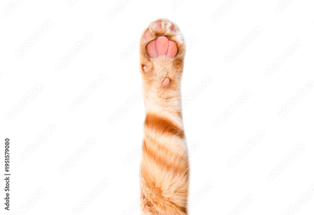 Paw of a red kitten Scottish Straight, closeup, isolated on white background #1951579080