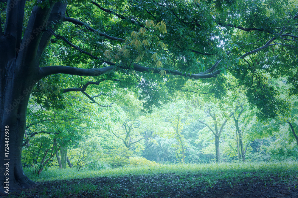 木漏れ日が差し込む森 #1724437306