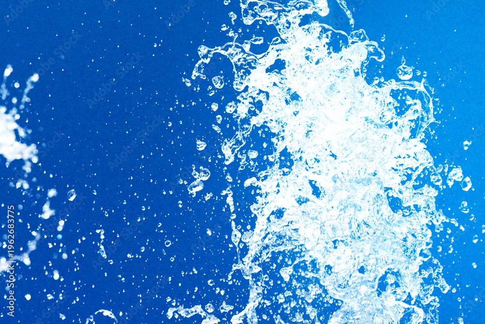 公園の噴水の水のアップと青い紙の背景 爽やかで涼しいイメージ #1962683775