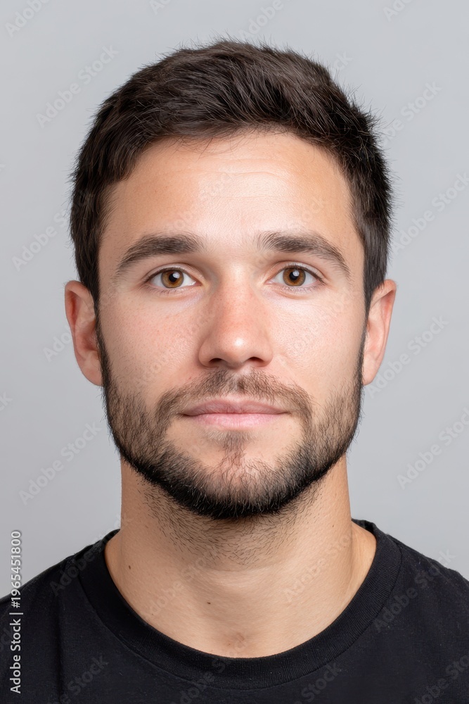 Photo ID portrait of a young Argentinian man with a neutral expression #1965451800