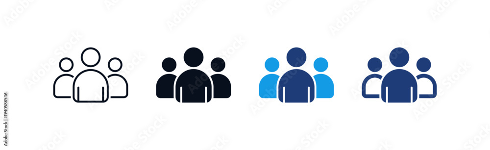 Professional Teamwork People icon set. group of three people or users icon representing business collaboration, community, leadership and group communication in outline, glyph and colored styles. #1940586546