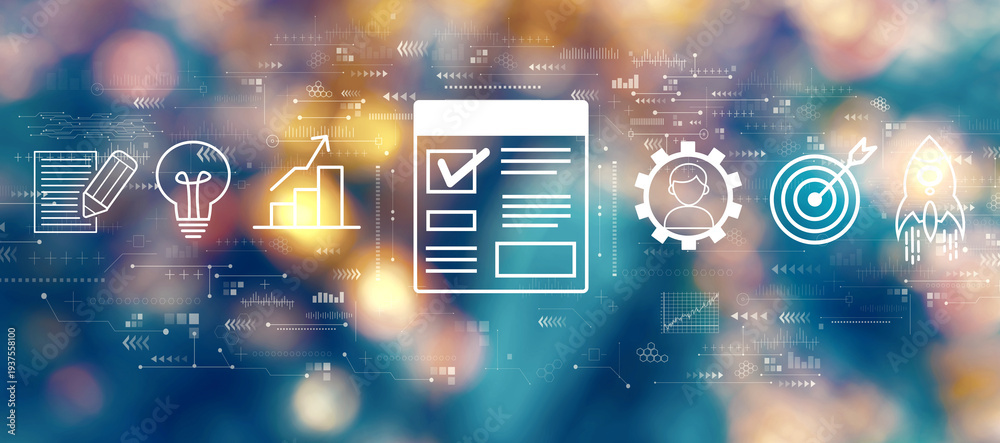 Project management theme with blurred city at night #1937558100