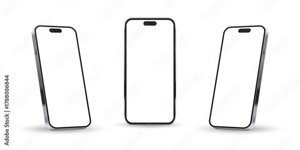 Realistic smartphone mockup. Mobile phone display. Isolated on white background, front and side views. Banner, Business, and App Design. Vector illustration #1788006844