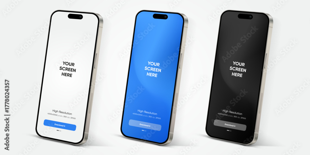 Realistic smartphone mockup. Mobile phone vector with isolated on white background. Device front view. 3D mobile phone with shadow. Realistic, high quality smart phone mockup for ui ux presentation. #1778024357