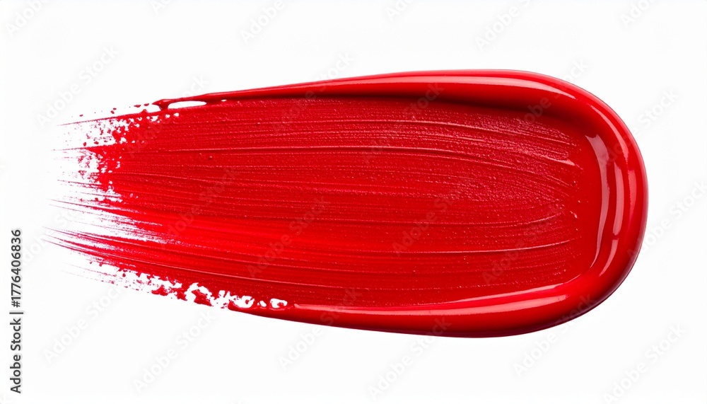 Red paint brushstroke with glossy texture and bristle detail on white background for editorial visual arts photography cosmetic decor and poetic intensity-themed visuals #1776406836